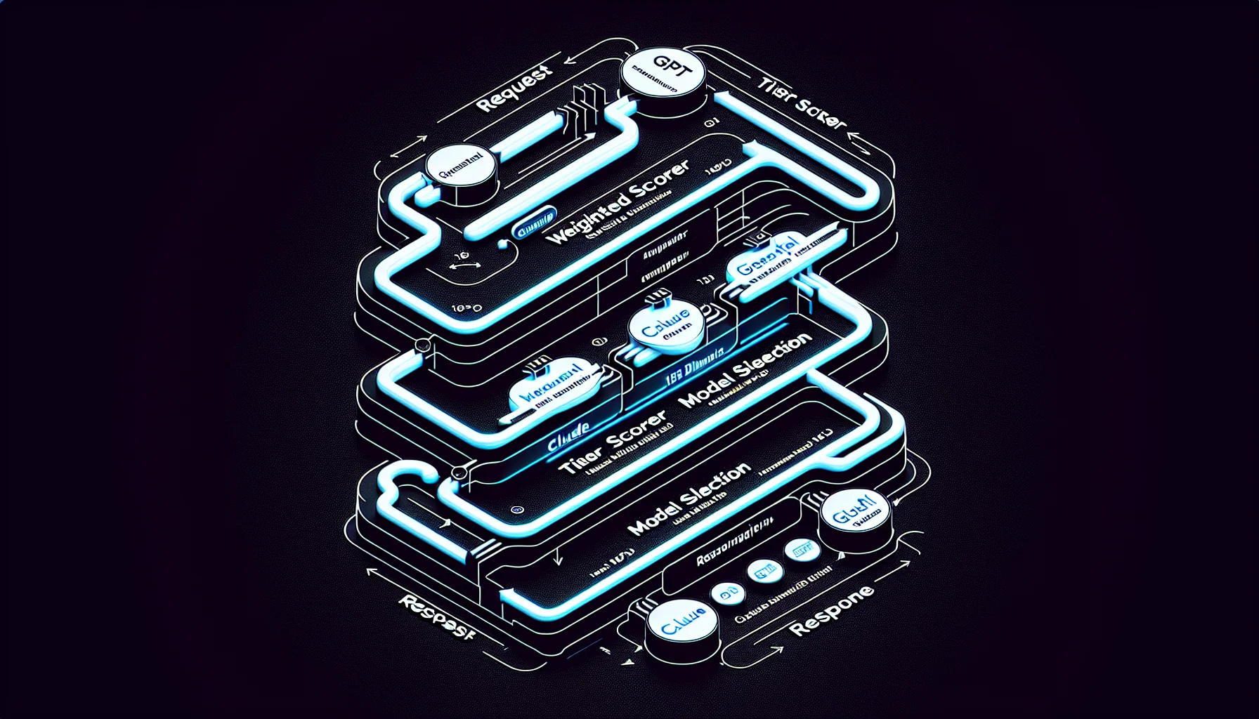 Request → Weighted Scorer (15 dims) → Tier (SIMPLE/MEDIUM/COMPLEX/REASONING) → Best Model → Response